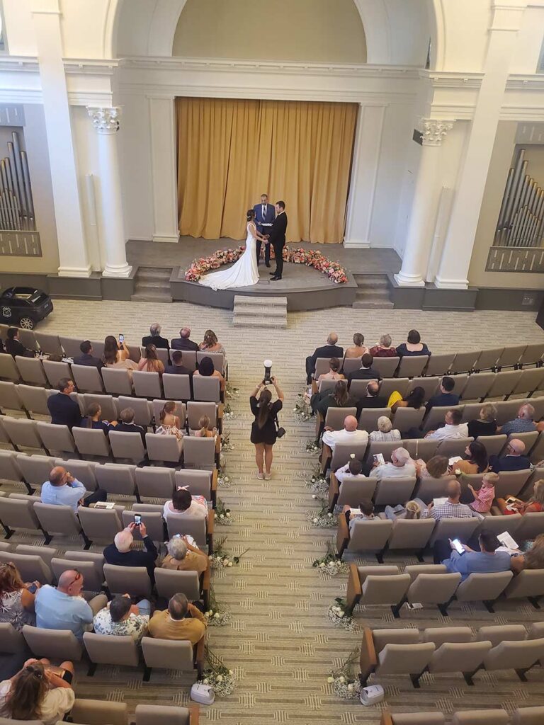 Seating up to 320 guests, this stunning chapel boasts exquisite light fixtures, unique laser-cut window accents, and an integrated sound system. An elegant, long central aisle creates a breathtaking entrance, perfect for weddings and significant celebrations. A beautiful pipe organ adds a touch of tradition, enhancing the atmosphere of grace and reverence.